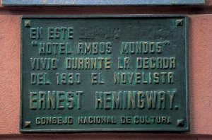 En la Habana Vieja, en la esquina de Obispo con Mercaderes, está el Hotel Ambos Mundos, donde dicen que Hemingway empezó a escribir su novela sobre la guerra civil española Por quién doblan las campanas. El hotel, restaurado a su antiguo esplendor, ahora es parte de un consorcio español asociado con el gobierno cubano (es decir, con las fuerzas armadas, que se reparten la administración del negocio del turismo).