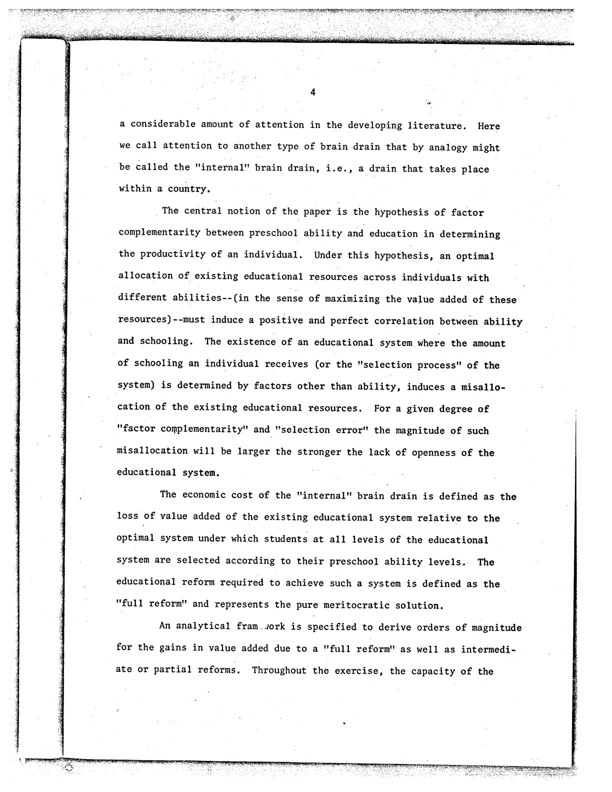III) The Economic Cost of the “Internal” Brain Drain: Its Magnitude in Developing Countries. El costo económico de la fuga de cerebros “interna”: su magnitud en países en desarrollo. (Marcelo Selowsky y Sebastián Piñera)